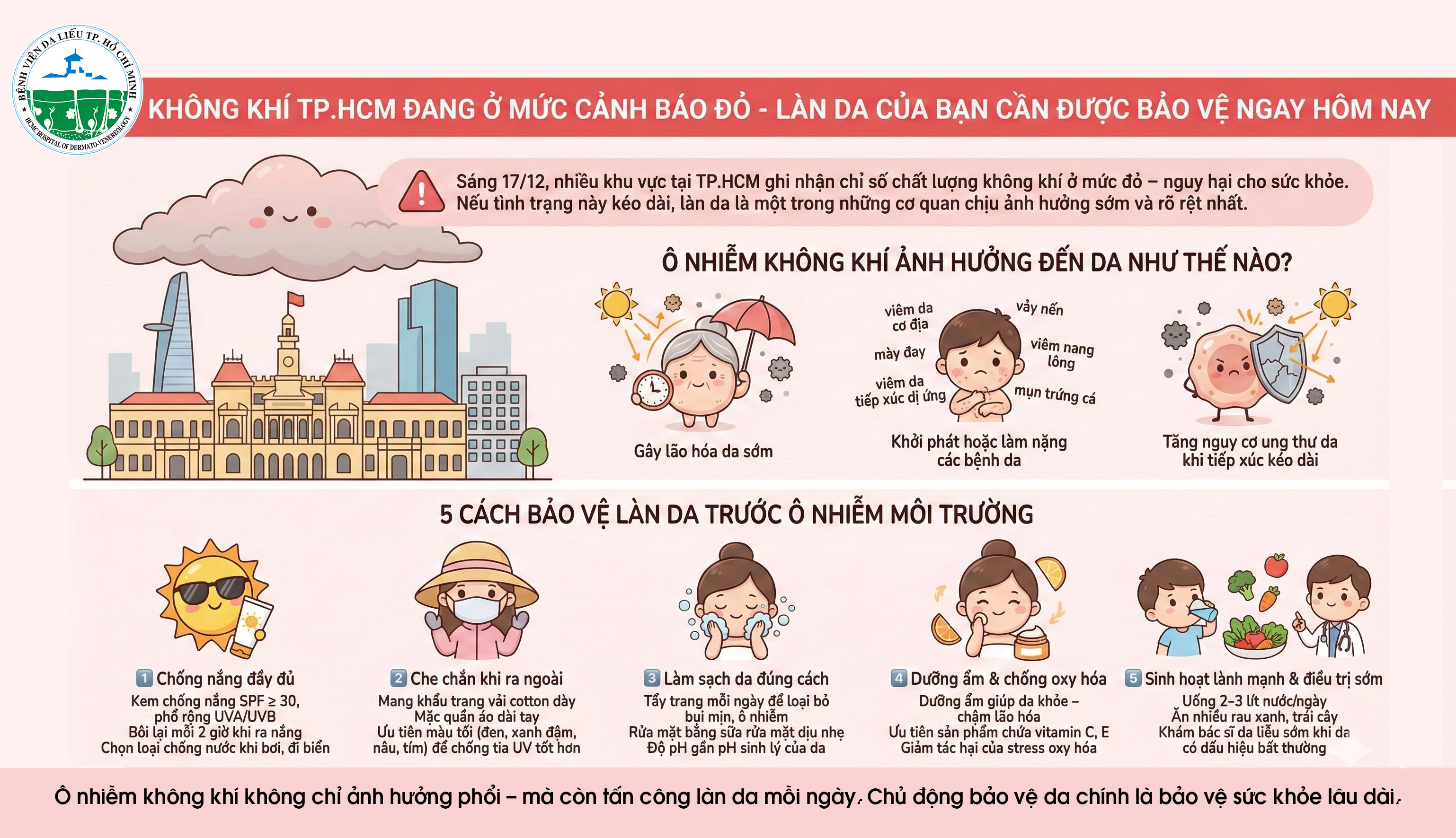 Sáng 17/12, nhiều khu vực tại TP.HCM ghi nhận chỉ số chất lượng không khí ở mức đỏ – nguy hại cho sức khỏe. Nếu tình trạng này kéo dài, làn da là một trong những cơ quan chịu ảnh hưởng sớm và rõ rệt nhất.