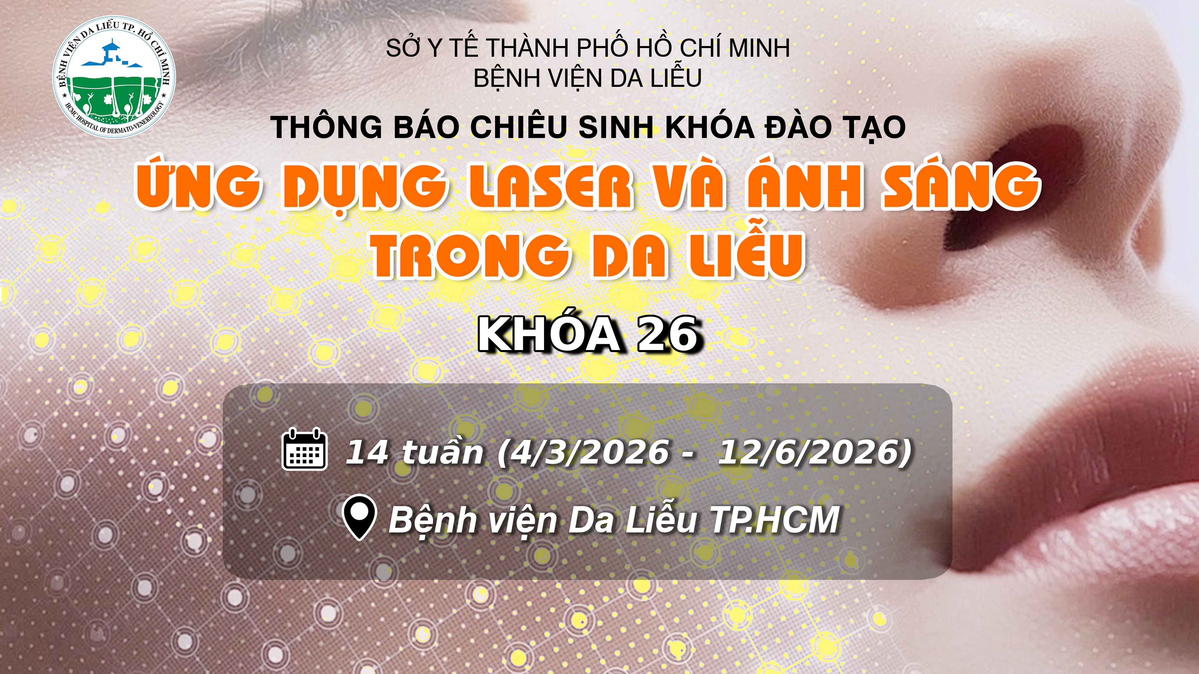 Nhằm cập nhật kiến thức chuyên khoa cho các nhân viên y tế công tác trong lĩnh vực chuyên khoa Da liễu, Liên Chi Hội Da liễu Thành phố Hồ Chí Minh phối hợp Bệnh viện Da Liễu Thành phố Hồ Chí Minh tổ chức Chương trình đào tạo liên tục trực tuyến năm 2022. Chương trình bao gồm 7 chủ đề, được tổ chức trong 7 buổi, cụ thể như sau: