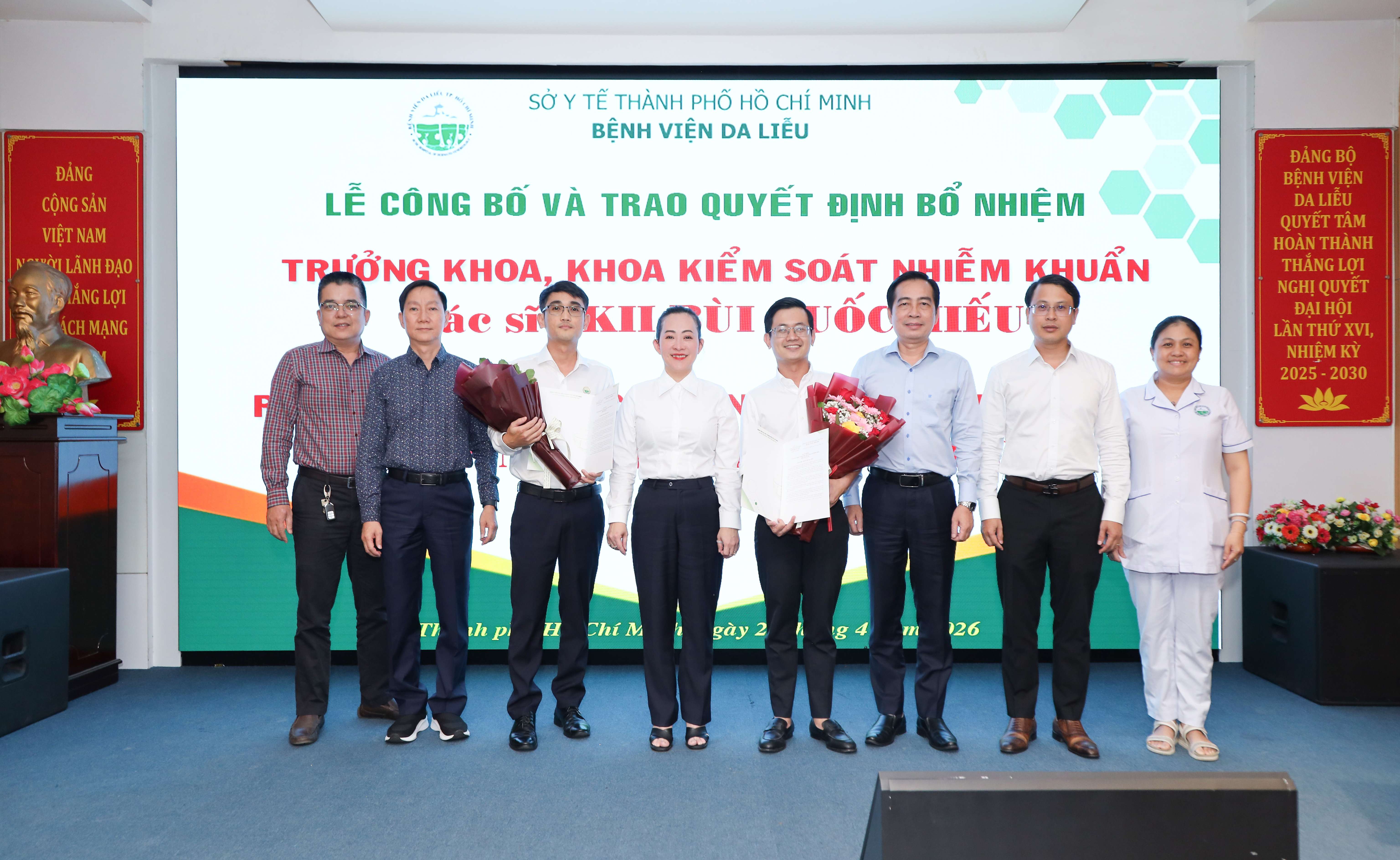 Sáng ngày 16/4/2024, tại Bệnh viện Da Liễu TP.HCM đã diễn ra Lễ công bố và trao quyết định bổ nhiệm Giám đốc Bệnh viện Da Liễu TP. Hồ Chí Minh cho BSCKII Nguyễn Thị Phan Thúy.