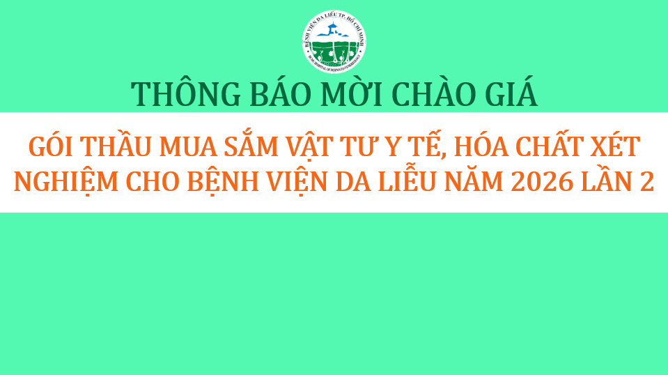 Bệnh viện Da Liễu mời các đơn vị tư vấn có năng lực kinh nghiệm báo giá cho các gói thầu nói trên, với thông tin như sau: