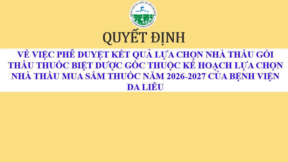 Căn cứ Công văn số 49/BVDL-KD ngày 09 tháng 01 năm 2026 của Bệnh viện Da Liễu về việc nhận Hồ sơ yêu cầu và nộp Hồ sơ đề xuất gói thầu thuốc Generic thuộc dự toán Mua sắm thuốc bổ sung năm 2024-2025 (lần 12) của Bệnh viện Da Liễu.