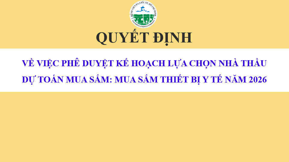 QUYẾT ĐỊNH VỀ VIỆC PHÊ DUYỆT KẾ HOẠCH LỰA CHỌN NHÀ THẦU DỰ TOÁN MUA SẮM: MUA SẮM THIẾT BỊ Y TẾ NĂM 2026